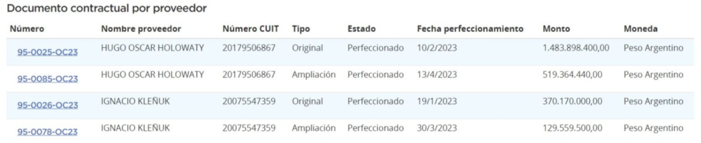 Las licitaciones, según reveló Border Periodismo, fueron adjudicadas a Hugo Oscar Holowaty, Ignacio Kleñuk y Compañía Comercial Mayorista S.R.L..