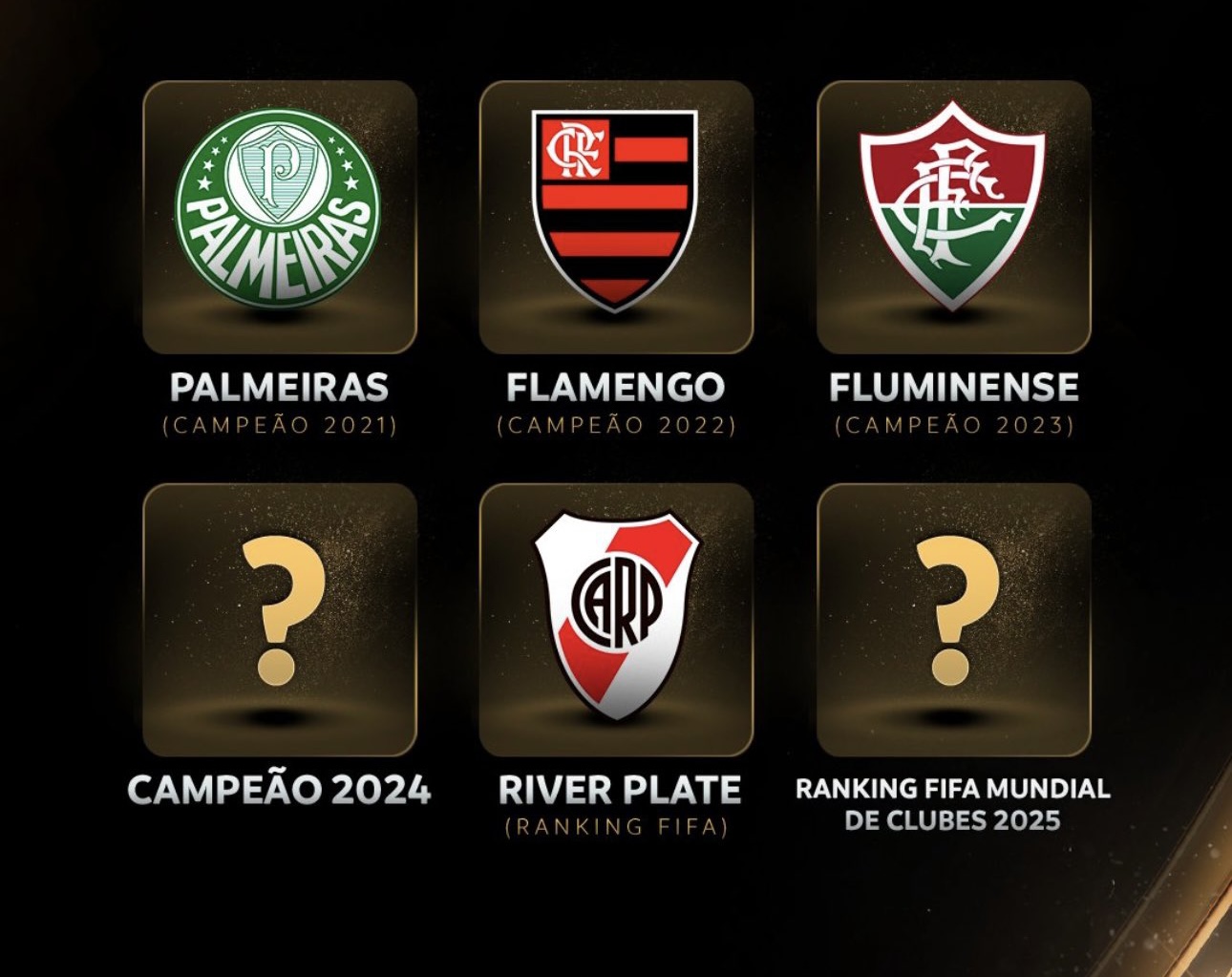 Las seis plazas de CONMEBOL corresponden a los campeones de las ediciones de la Libertadores 2021, 2022, 2023 y 2024 mientras que los otros dos restantes son para los mejor ubicados en el ranking.
