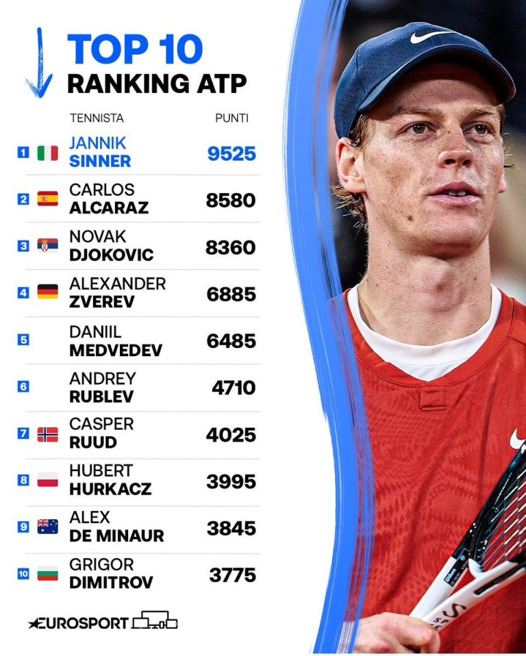 Tras el Abierto de Francia el italiano destronó al serbio, quien cayó al tercer lugar por el escalón que también subió el campeón de París: el español Carlos Alcaraz, purrete de 21 años que obtuvo su tercer Grand Slam.