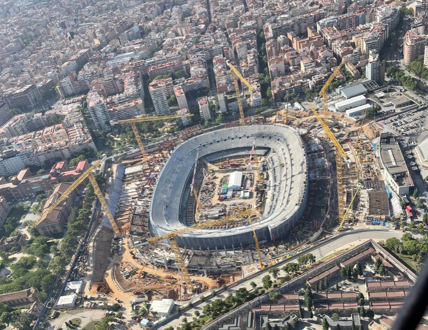 El conjunto Blaugrana. En junio del año pasado comenzaron las obras desmontando todas las bandejas. A partir de octubre comenzó la construcción de las nuevas gradas y en los meses siguientes también la estructura exterior y el estacionamiento.