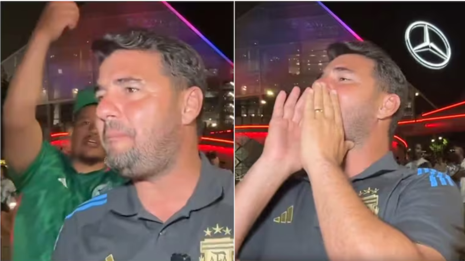 A la salida del partido, el periodista estaba produciendo un video para sus redes sociales, cuando fue interrumpido por un hincha del país azteca. Mientras el mendocino decía “la Selección de Scaloni, la campeona del mundo…”, el simpatizante del Tri irrumpió en el video a los gritos desde atrás, diciendo que a Argentina le habían “regalado” el Mundial de Qatar.