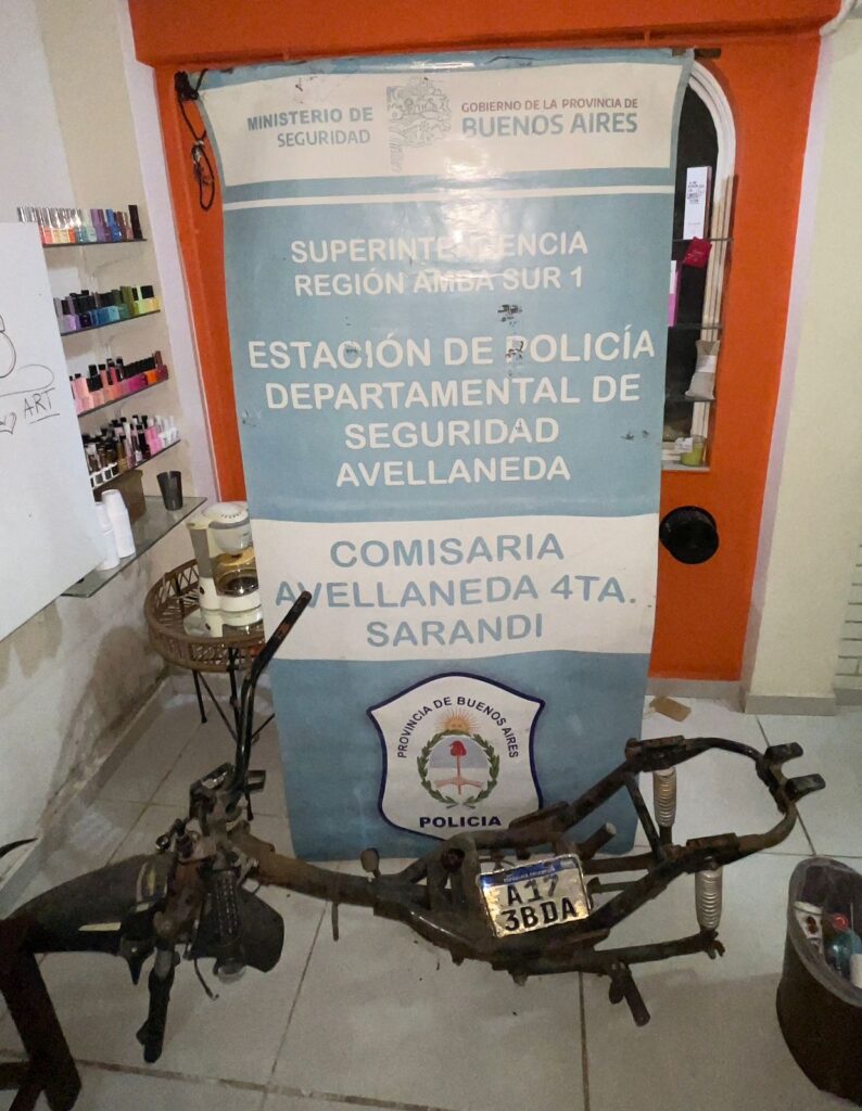 En el segundo, encontraron un cuadro de motovehículo con patente A173BDA, con pedido de secuestro activo desde 2023 por hurto de automotor en Wilde.