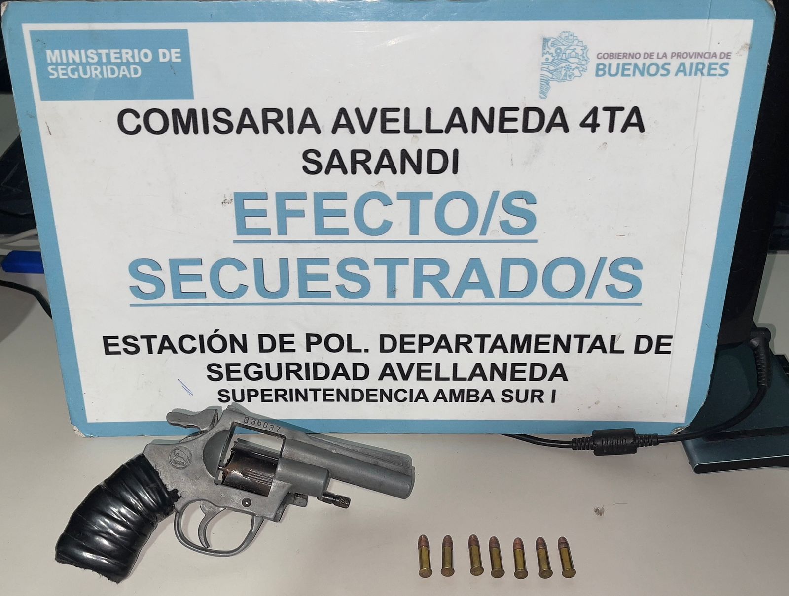 En el primer domicilio, la policía secuestró un revólver Bagual calibre .22 con siete municiones y una Fiorino blanca dominio AD447MC, sindicada como vehículo utilizado en los robos.