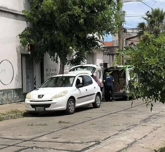 una camioneta municipal de Avellaneda, de culata, y un auto particular –parece un Peugeot– con el baúl abierto. Y ahí, clarito, se ve mercadería pasando de un vehículo al otro.