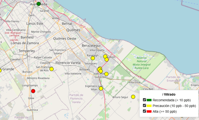 gran parte del país tiene niveles de arsénico en el agua por encima de lo recomendado, tanto en pozos como en algunas redes domiciliarias. Y sí, zona sur también entra en esa franja de riesgo.