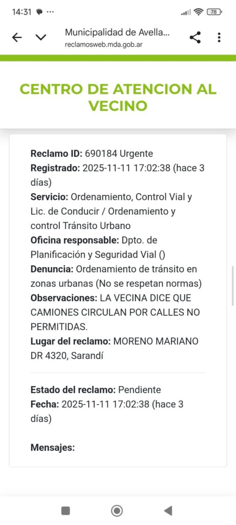 Los frentistas ya realizaron la denuncia correspondiente ante el 0800 municipal, pero hasta el momento no lograron una solución. También hablaron con el camionero y con el personal del depósito, pero aseguran que nadie presta atención y todo sigue igual.