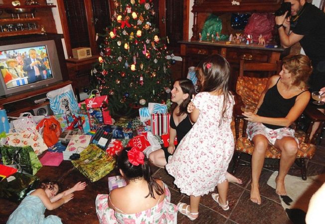 Después llegó la Navidad. La misa de gallo, la calle de tierra llena de vecinos abrazándose después de las doce, los chicos jugando abajo del farol, los brindis con los abuelos, los tíos, los primos, los vecinos de toda la vida. El lechón hecho por el padre, la parra que era techo de fiesta, las estrellitas, las bengalas, los cohetes cuidados por los grandes.