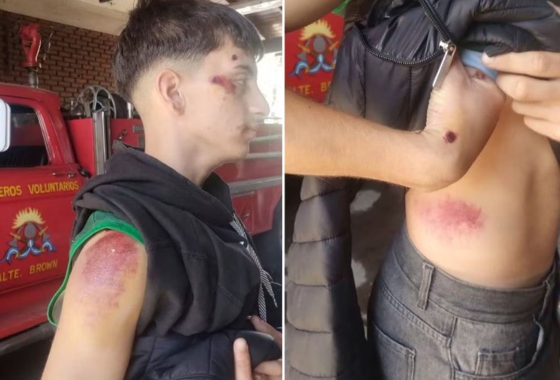 Sin embargo, las imágenes tomadas posteriormente evidenciaron hematomas intercostales y en la frente, además de cortes y escoriaciones. Su madre, Claudia, señaló que un vecino habría presenciado la agresión y aseguró que el joven sufrió golpes en la cabeza, la cara y las costillas, por lo que debía ser evaluado con estudios complementarios.