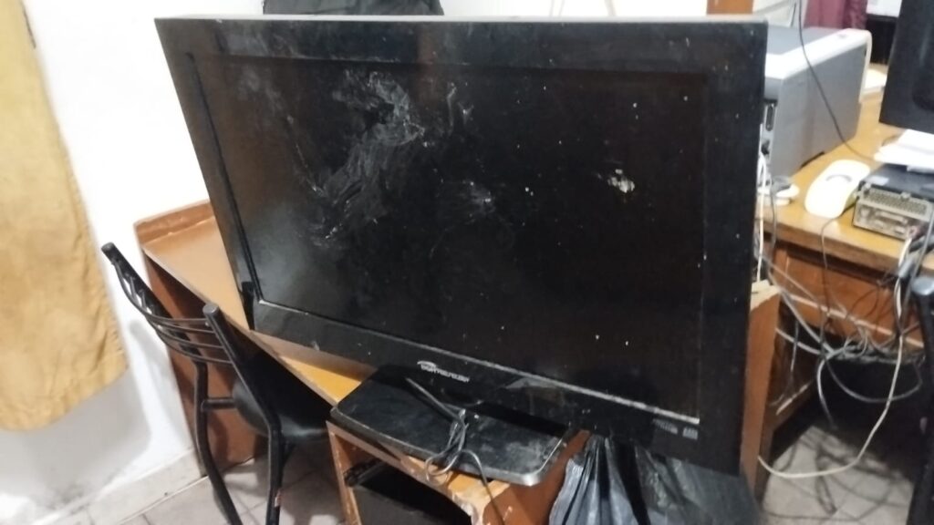 Durante la requisa, el “paseo” quedó explicado a medias: en el interior del vehículo se halló un televisor, una barreta y una balanza, elementos cuya procedencia los sujetos no lograron justificar, pese a varios intentos poco convincentes.
