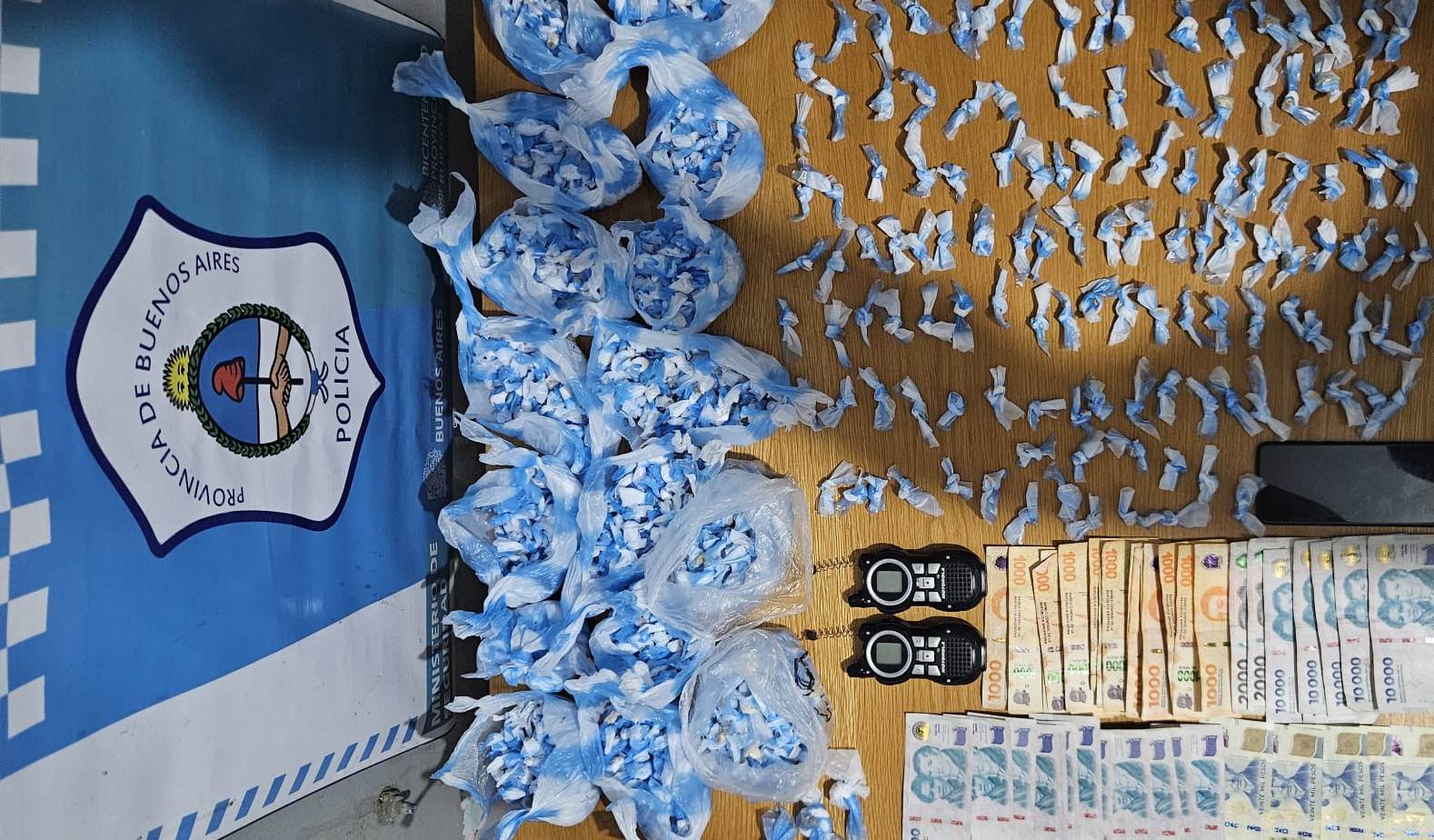 Además, al registrar el lugar, los efectivos incautaron dentro de una mochila una bolsa con 1.140 envoltorios de pasta base, con un peso total de 1.550 gramos, dos handies y 310.000 pesos en efectivo.
