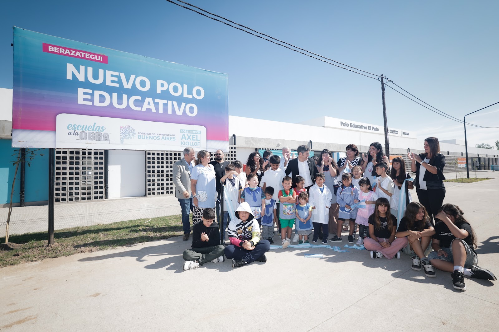 El gobernador de la provincia de Buenos Aires, Axel Kicillof, encabezó este miércoles el acto de inauguración del edificio educativo N°300 construido desde el inicio de la gestión. Fue en el marco de la puesta en funcionamiento de tres nuevas instituciones que conforman el Polo Educativo de Berazategui, junto al ministro de Gobierno, Carlos Bianco; la directora general de Cultura y Educación, Flavia Terigi; la directora ejecutiva de OPISU, Romina Barrios; el intendente local, Carlos Balor; y la directora del Jardín de Infantes N°953, Florencia Bernarducci.