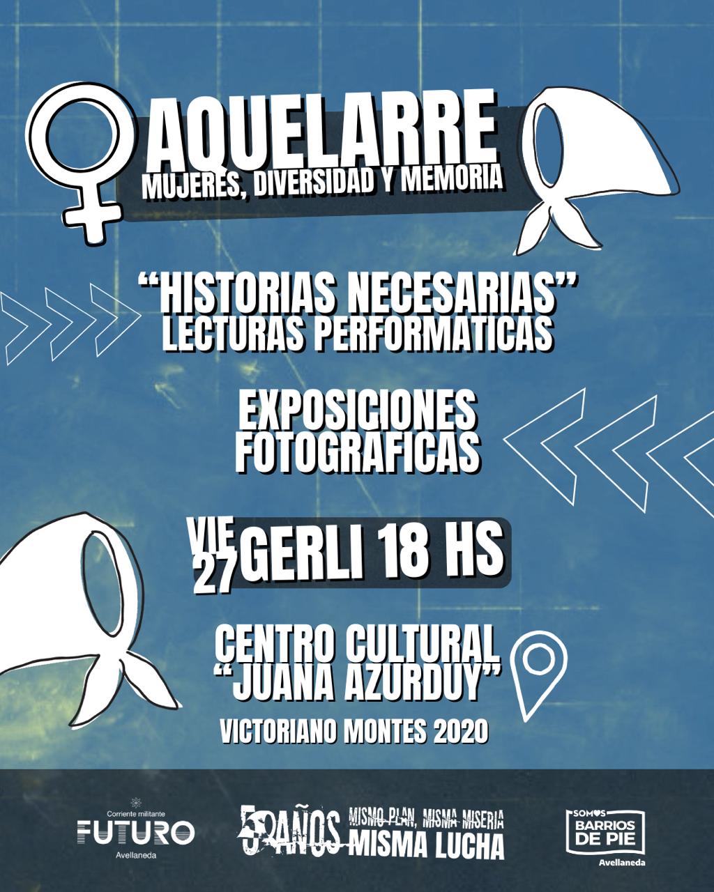 GERLI, 24 DE MARZO DE 2026. El próximo viernes 27 de marzo, a partir de las 18:00 hs, el Centro Cultural “Juana Azurduy” (Victoriano Montes 2020, Gerli) abrirá sus puertas para Aquelarre, una propuesta que busca poner en primer plano las voces de las mujeres y las diversidades en el marco de la construcción de la memoria colectiva.