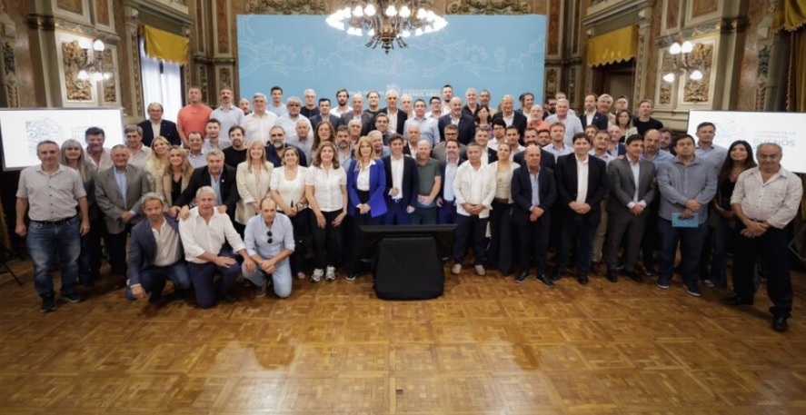 Desde el Salón Dorado de calle 6, el gobernador Axel Kicillof encabezó un encuentro con todos los intendentes bonaerenses del peronismo y el radicalismo (La Libertad Avanza y el PRO faltaron), a los que le prometió girarles antes de mayo la primera cuota del Fondo de Emergencia y Fortalecimiento de la Inversión Municipal, como así también transferirles parte del dinero que Nación le confiscó a la provincia de Buenos Aires.