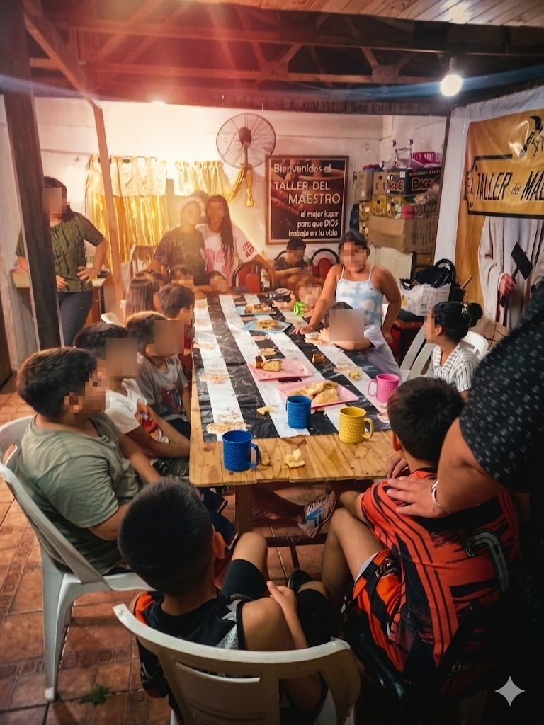 “El Tesoro de Jesús” no solo ofrece una merienda a los niños del barrio; es un espacio de contención integral. “Explicamos la palabra de Dios, pero también queremos sumar las cenas, no solo para los niños, sino para abuelos y mamás solteras”, explica Carla. La misión trasciende lo alimentario: el equipo brinda apoyo escolar a quien lo necesita y se enfoca en la palabra de Dios como herramienta para abordar problemas que los niños no pueden resolver solos.