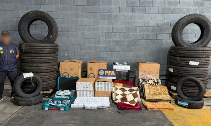Asimismo, se decomisaron 10.400.000 pesos, 400 dólares, varias dosis de marihuana, más de 1200 neumáticos de origen chino y brasilero de diversos rodados para autos y camionetas de alta gama, 650 juguetes de origen chino, 151 artículos de electrónica y de indumentaria de primera línea, 214 perfumes, 110 mochilas , 120 alfombras, 90 termos, 23 teléfonos celulares de alta gama, 4 notebooks, 2 tablets, 6 smartwatchs, varias cajas de herramientas y más de 2000 atados de cigarrillos de origen extranjero y documentación de prueba perteneciente a la empresa de paquetería.